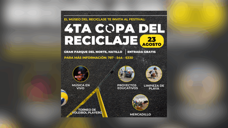 El Museo del Reciclaje invita al público general a participar en la 4ta Copa del Reciclaje, a celebrarse el sábado, 23 de agosto de 2025 en el Gran Parque del Norte de Hatillo desde las 8:30 a.m. hasta las 4:00 p.m.